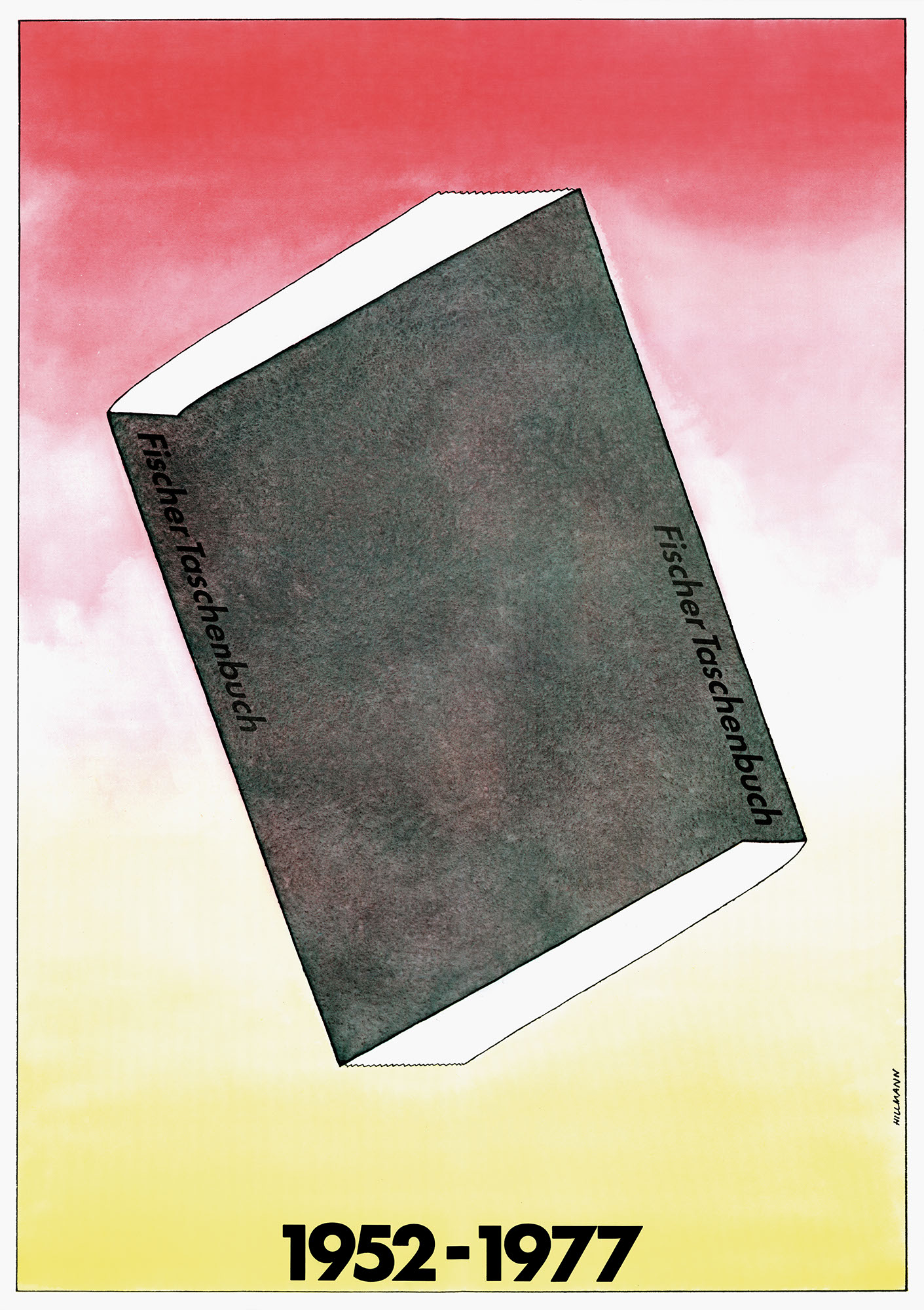 Fischer Taschenbücher 1952-1977Jahr: 1977Medium: PlakatMaße: 59,4x84,1 cm (DIN A1)Technik: OffsetdruckAuftraggeber: S. Fischer TaschenbücherOrt: Frankfurt am MainEntstanden im Rahmen eines Gesamtauftrags des Hillmann-Studenten Gunter Rambow für den S. Fischer Verlag.